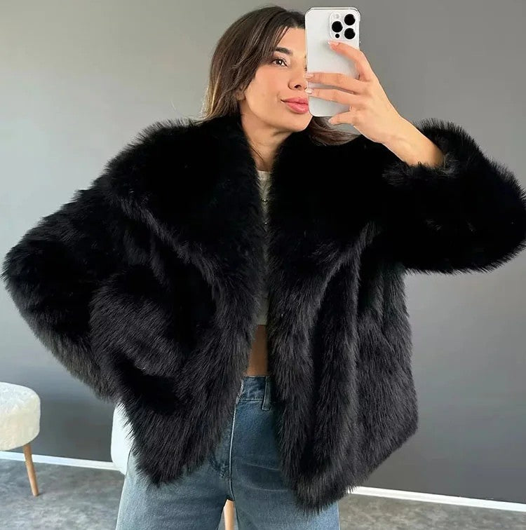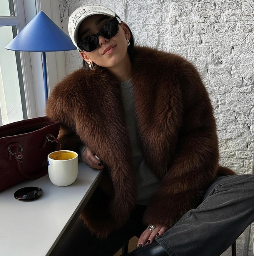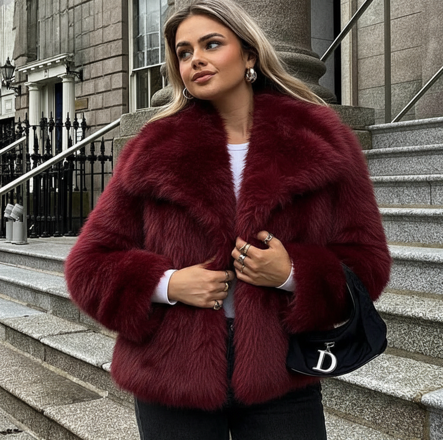 Tessuto di Lusso: Realizzata con una pelliccia sintetica di altissima qualità, offre una texture incredibilmente soffice e folta che imita perfettamente la pelliccia vera, garantendoti un look glamour e un comfort etico.